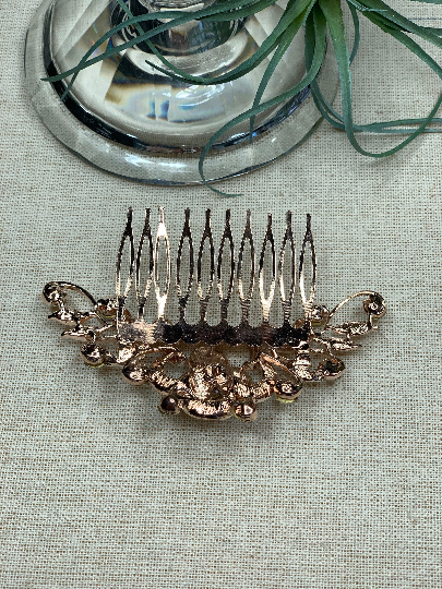 Rose gold hair comb with flower and leaf Decor crystal rhinestones floral vine with flower and leaf decor