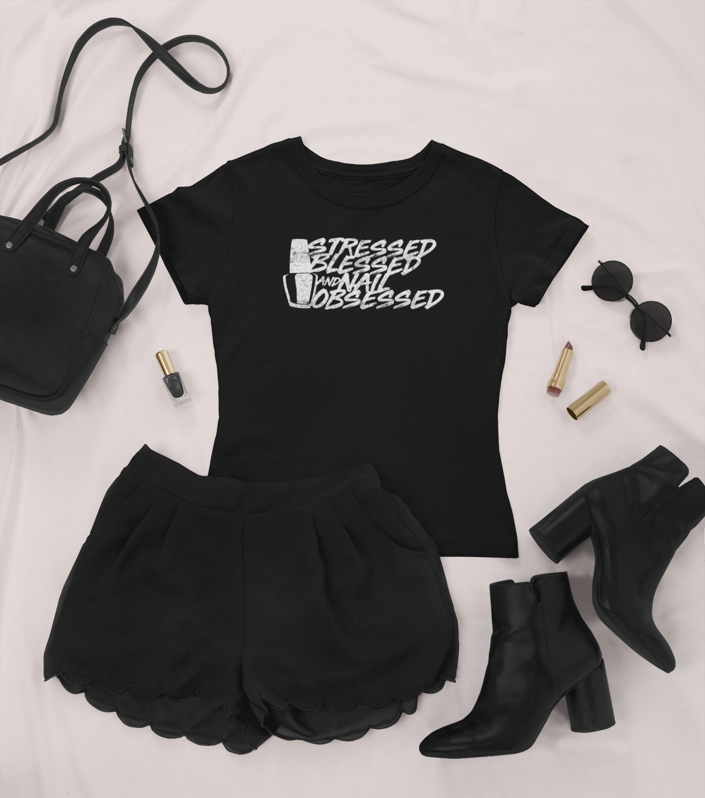 Stressed, Blessed and Nail Obsessed T-Shirt Black